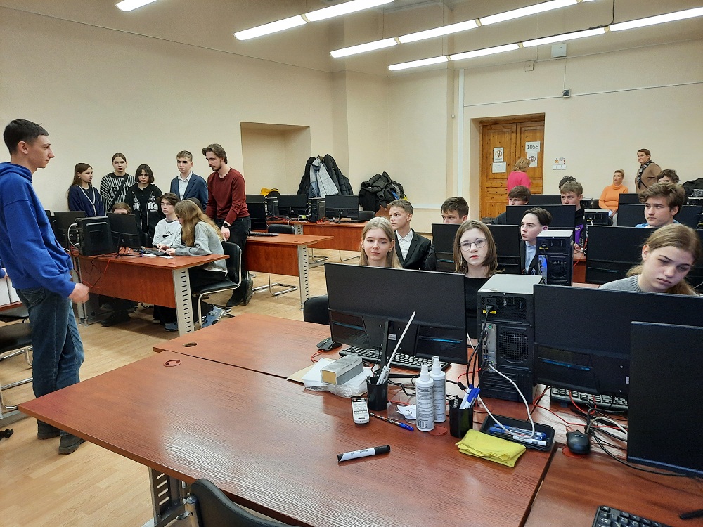 6 февраля 2024 года в рамках программы профориентационной работы наш университет посетили школьники гимназии № 526 Московского района. После экскурсии по зданию университета и знакомства с правилами поступления в университет, организованных отделом по профориентационной работе, учащихся собрали в компьютерном классе. Представители кафедры информационных систем и технологий провели мастер-класс для школьников по Интернету вещей. Здесь им рассказали о технологии Интернета вещей и предложили самостоятельно собрать и запрограммировать простейшее устройство. Ребята с большим удовольствием выполнили эту работу. В хорошем настроении и с новыми знаниями они покинули наш университет. Надеемся, не навсегда.