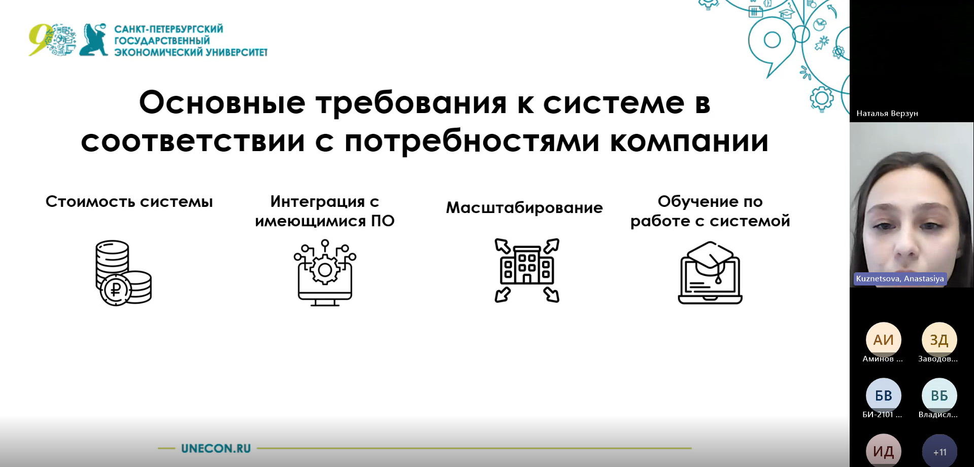 - Заводовской И.Д. и Туркова В.В. (гр. БИ-2101) на тему: «Управление деятельностью компании на основе данных как элемент экономики данных» (Н.р. – канд. техн. наук, доц. Верзун Н.А.);
