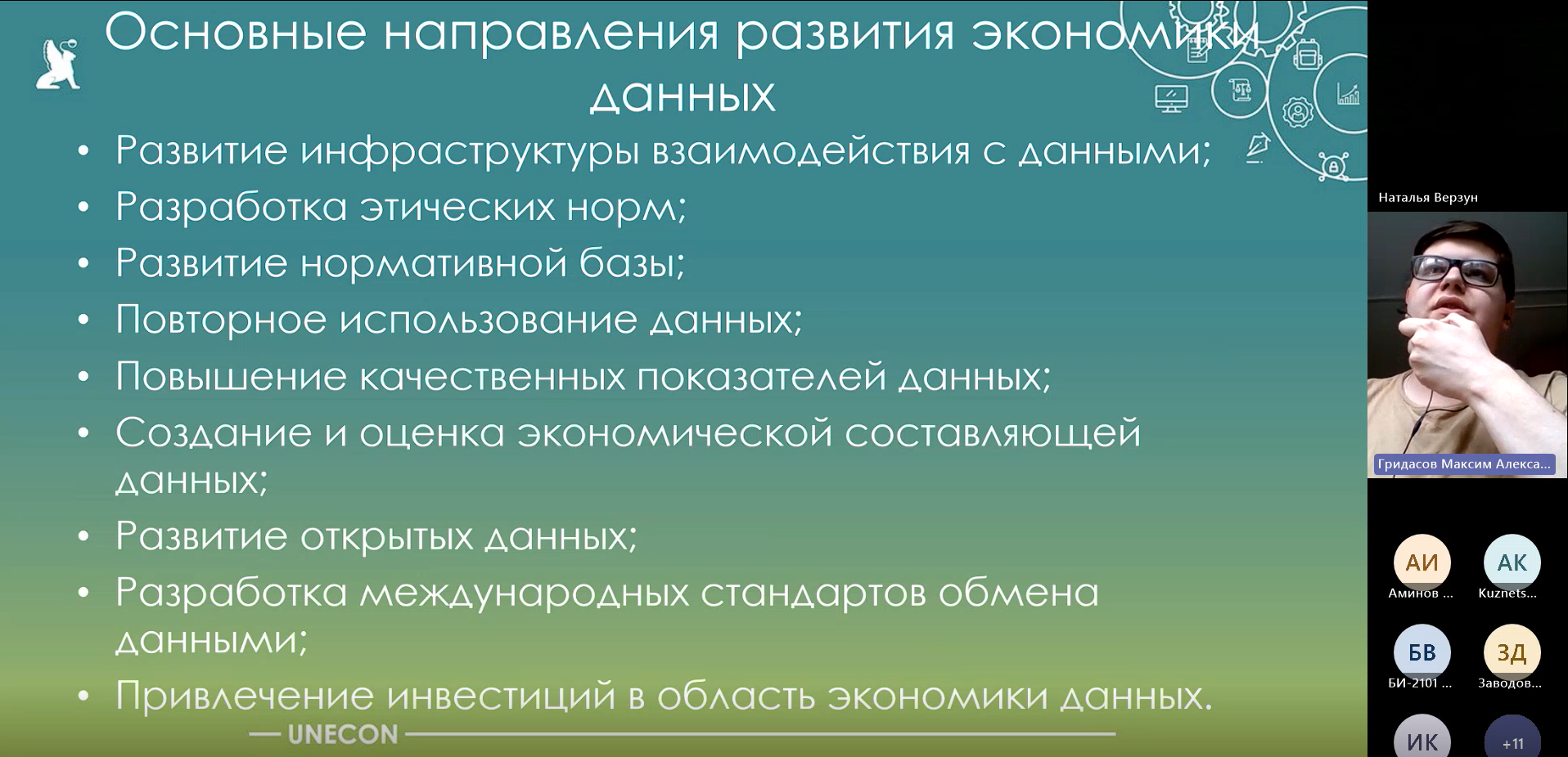 - Гридасова М.А. (гр. БИ-2101) на тему: «Экономика данных: глобальные тренды» (Н.р. – д-р экон. наук, проф. Андреевский И.Л.);