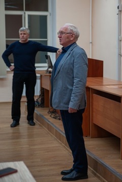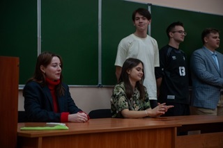Позже в этот же день прошел День открытых дверей факультета информатики и прикладной математики, на котором перед собравшимися абитуриентами и их родителями выступил заведующий кафедрой Коршунов Игорь Львович. Он рассказал о направлениях подготовки бакалавров и особенностях реализации обучения на нашей кафедре. Игорь Львович пригласил школьников приходить на кафедру и участвовать в мероприятиях, проводимых для студентов. А также обращаться с вопросами на почту кафедры и лично к нему. С собравшимися поделились своим мнением об обучении и студенты кафедры: Смирнова Елизавета (группа БИ-2203), Дзюба Анастасия (группа БИ-2302), Нетреба Ян (группа ИС-2301), Санников Никита (группа ИС-2301).