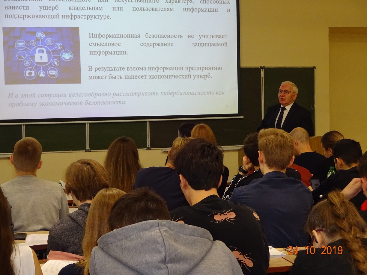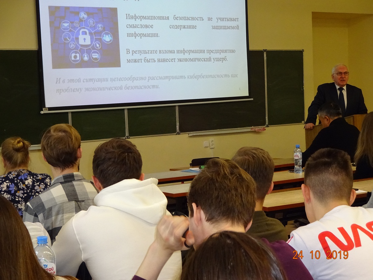 В рамках данной конференции 24 октября в нашем университете состоялось заседание секции «Информационно-экономическая безопасность», организованная и проведенная кафедрами экономической безопасности и информационных систем и технологий. В работе секции приняли участие ученые, преподаватели и студенты не только нашего университета. Состоялось активное обсуждение вопросов противодействия коррупции и обеспечения кибербезопасности в условиях цифровизации. С интересными докладами выступили студенты Алейникова Юлия (группа ЭБ-1804) и Пономарев Иван (группа БИ-1604).
